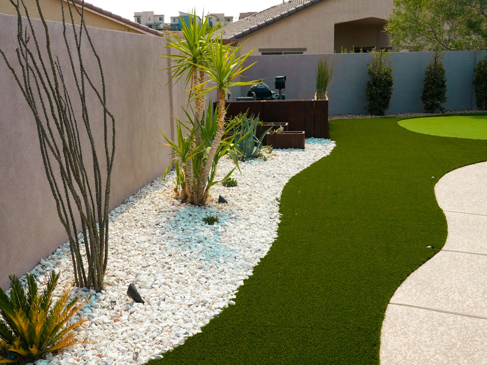 “Jason and his team were fantastic. He took everything we wanted and went above and beyond. From turf to paver walkways, lighting, stucco walls, and planting desert plants with irrigation, our backyard is gorgeous. This business is prompt, friendly, tidy, and trustworthy.”